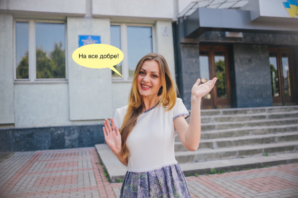 Listen to Oksana talking to an instructor and a student. Does she address them in the same way?