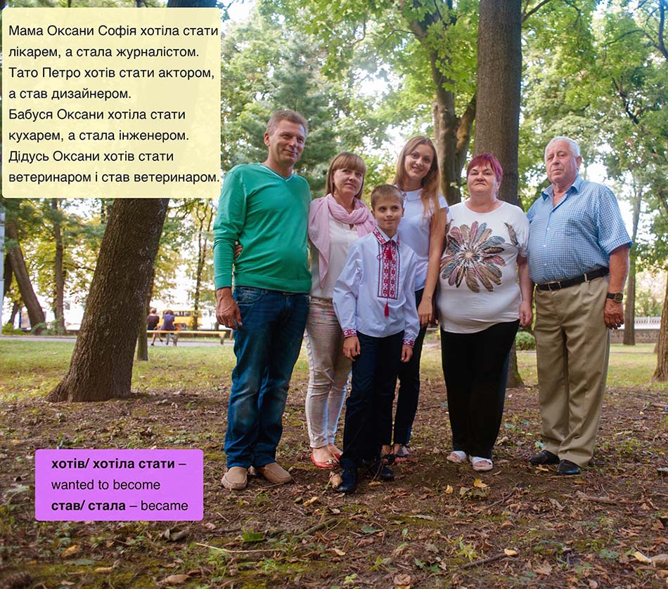 - nouns in the instrumental case (professions) conditional mood (я хотів би/хотіла б “I would like”)